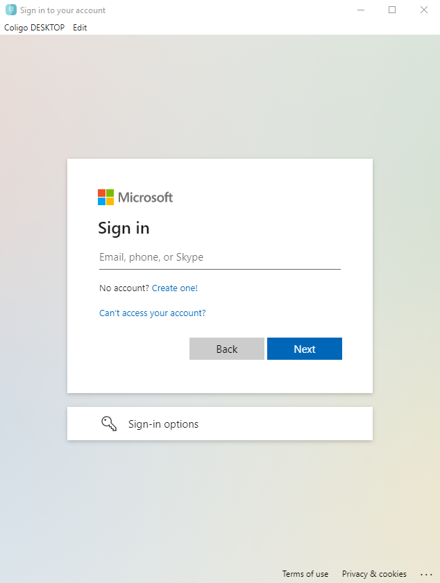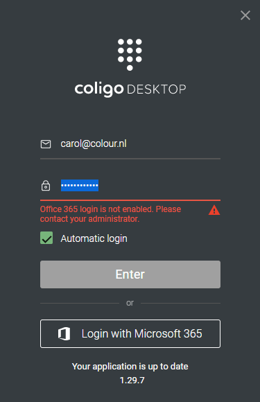 Logging into Coligo DESKTOP has been made even easier. From now on, in addition to the regular login with your Operator web user, you can also log in with a Microsoft 365 account.